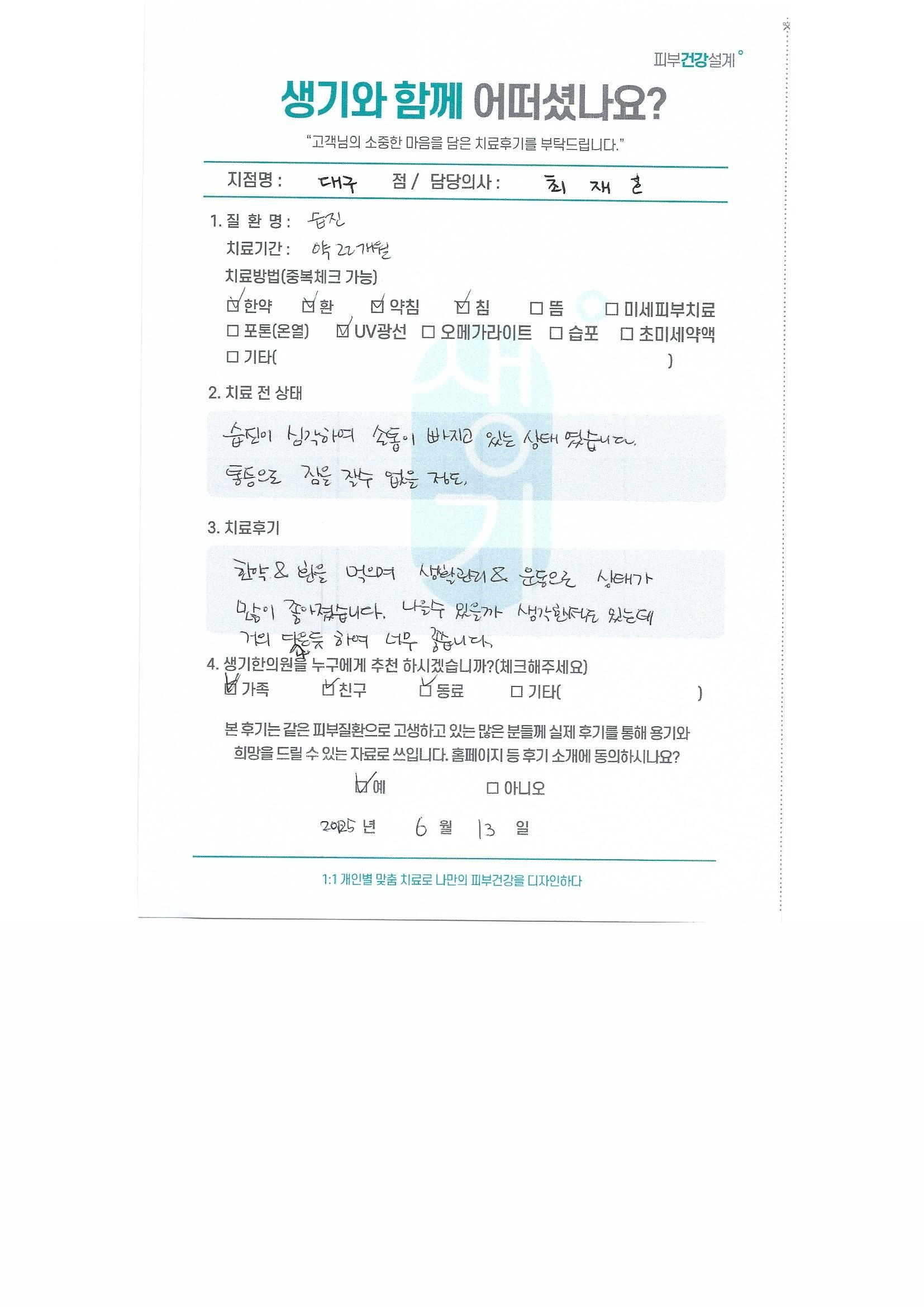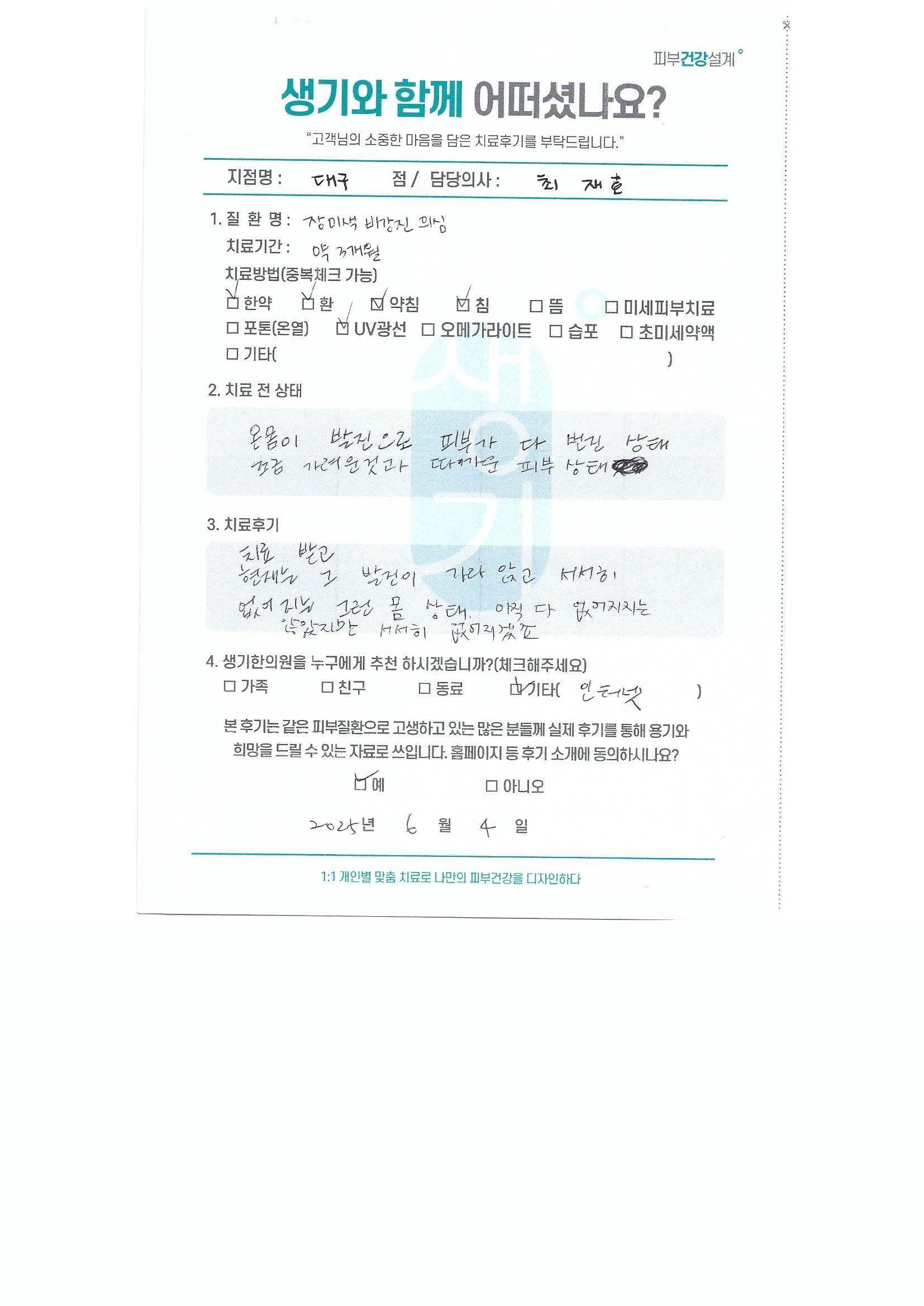 생기한의원과 함께하신 생생한 자필 및 영상 후기를 소개합니다.