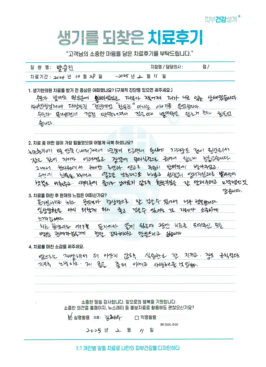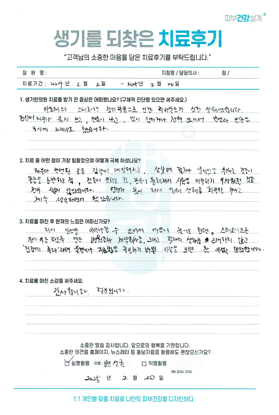 생기한의원과 함께하신 생생한 자필 및 영상 후기를 소개합니다.
