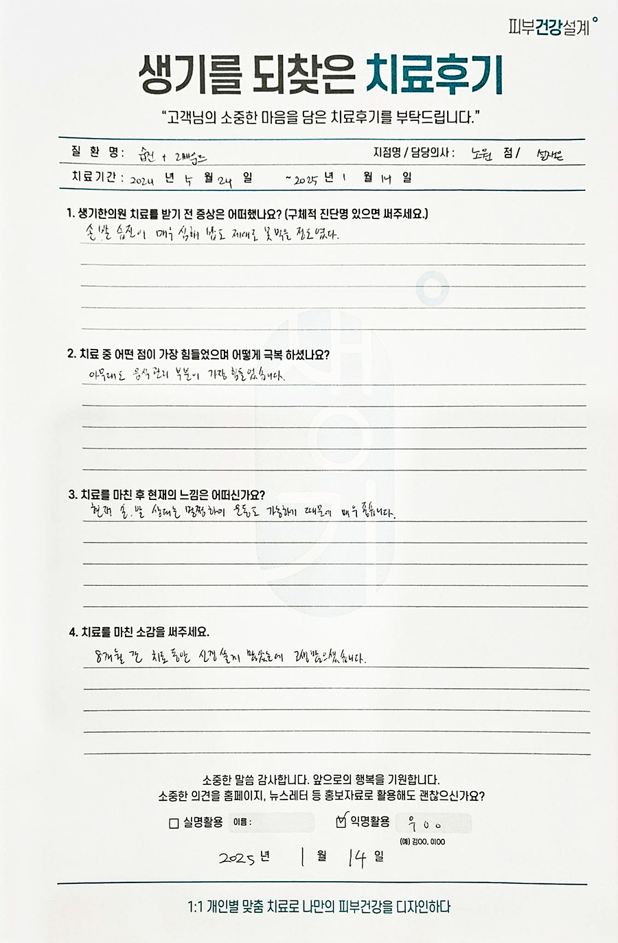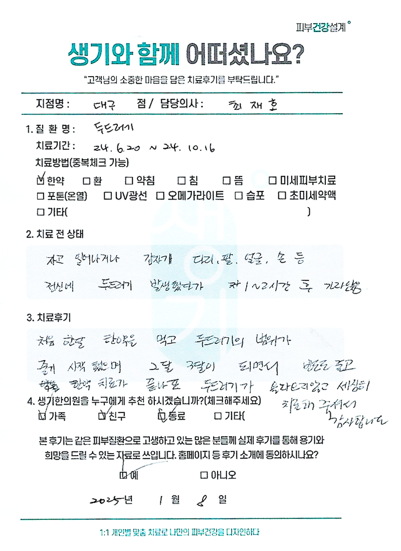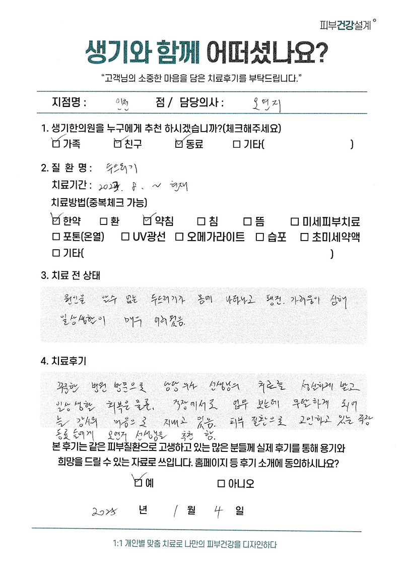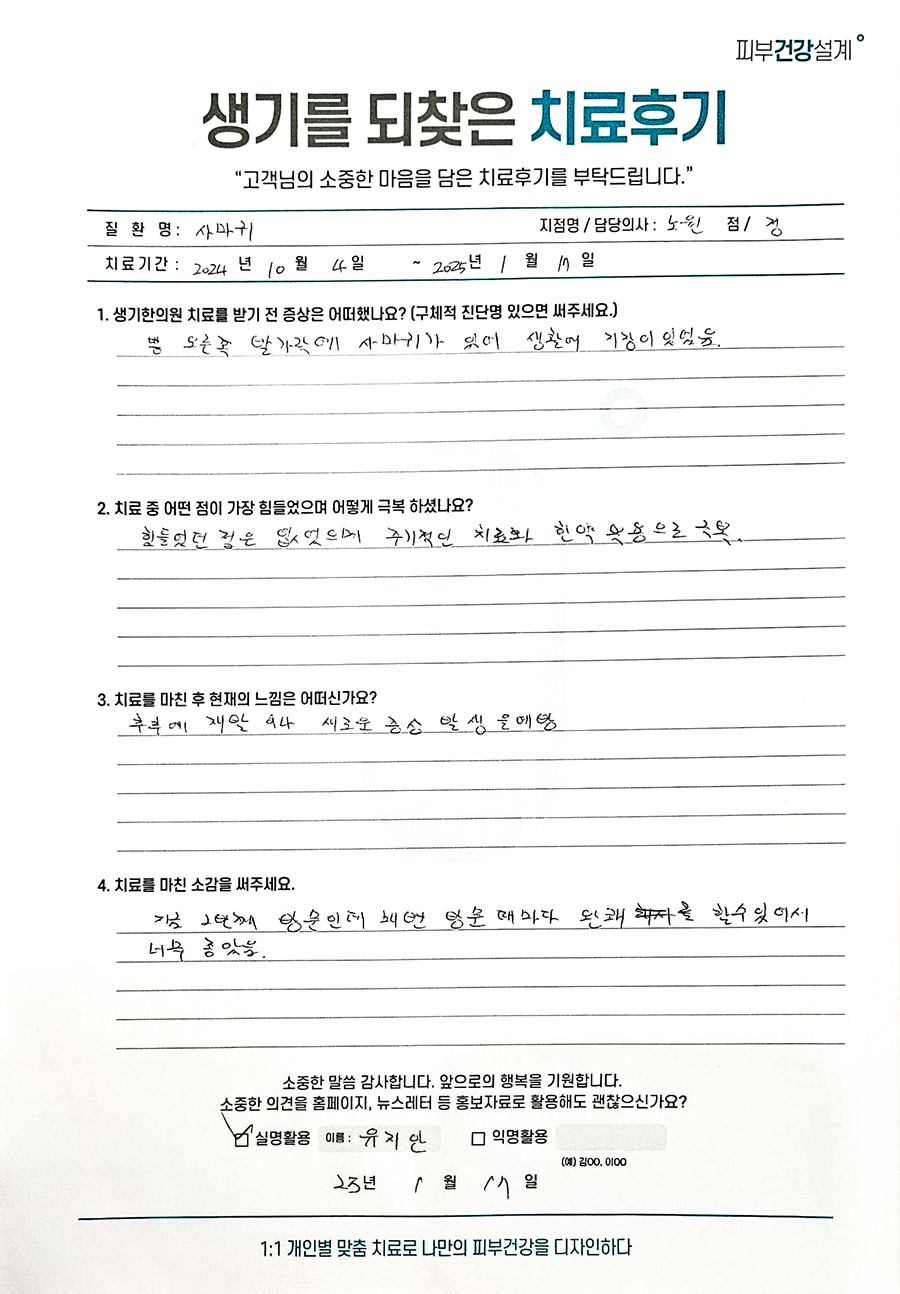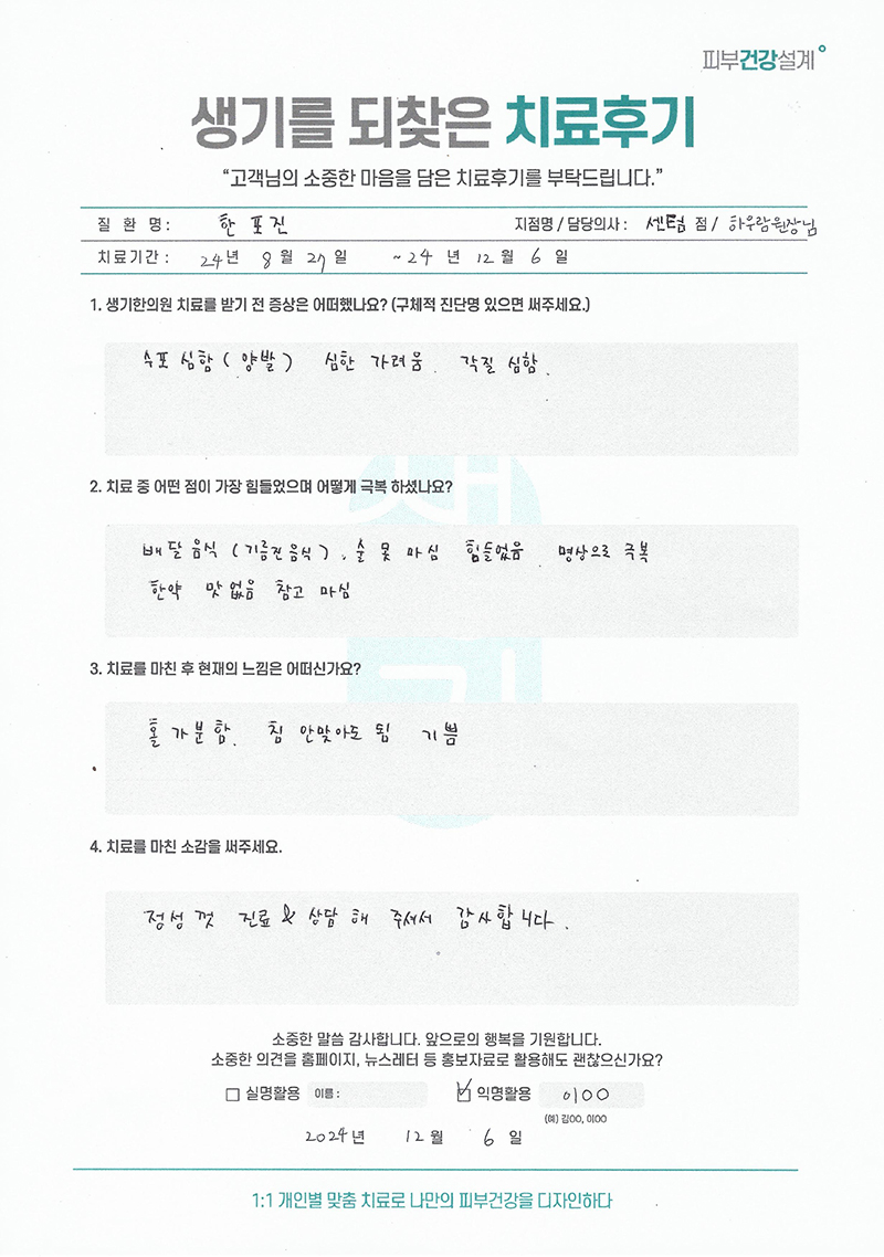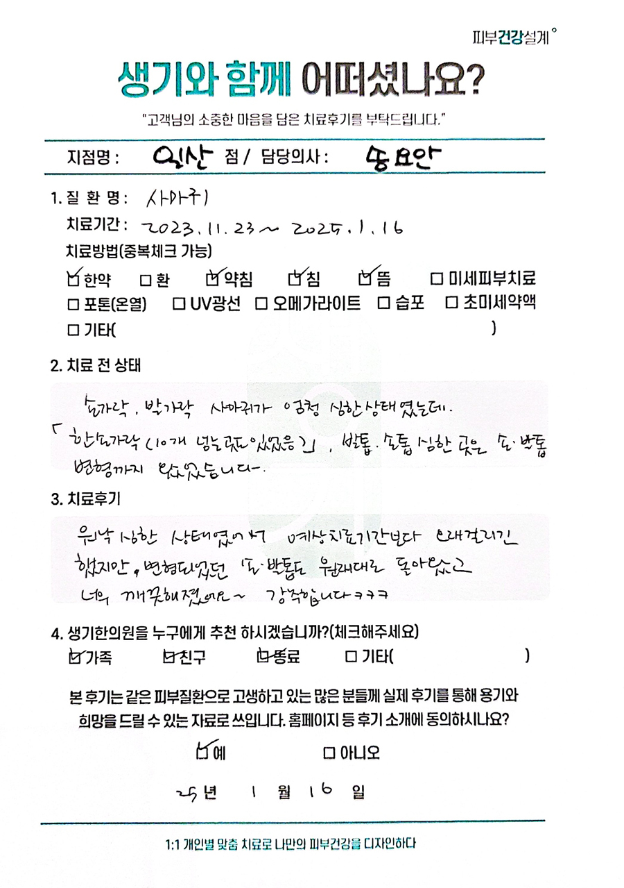 생기한의원과 함께하신 생생한 자필 및 영상 후기를 소개합니다.