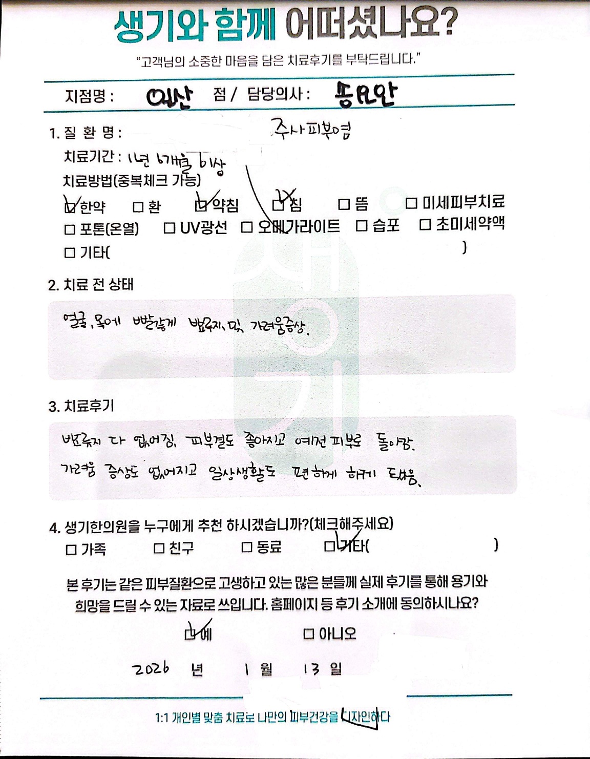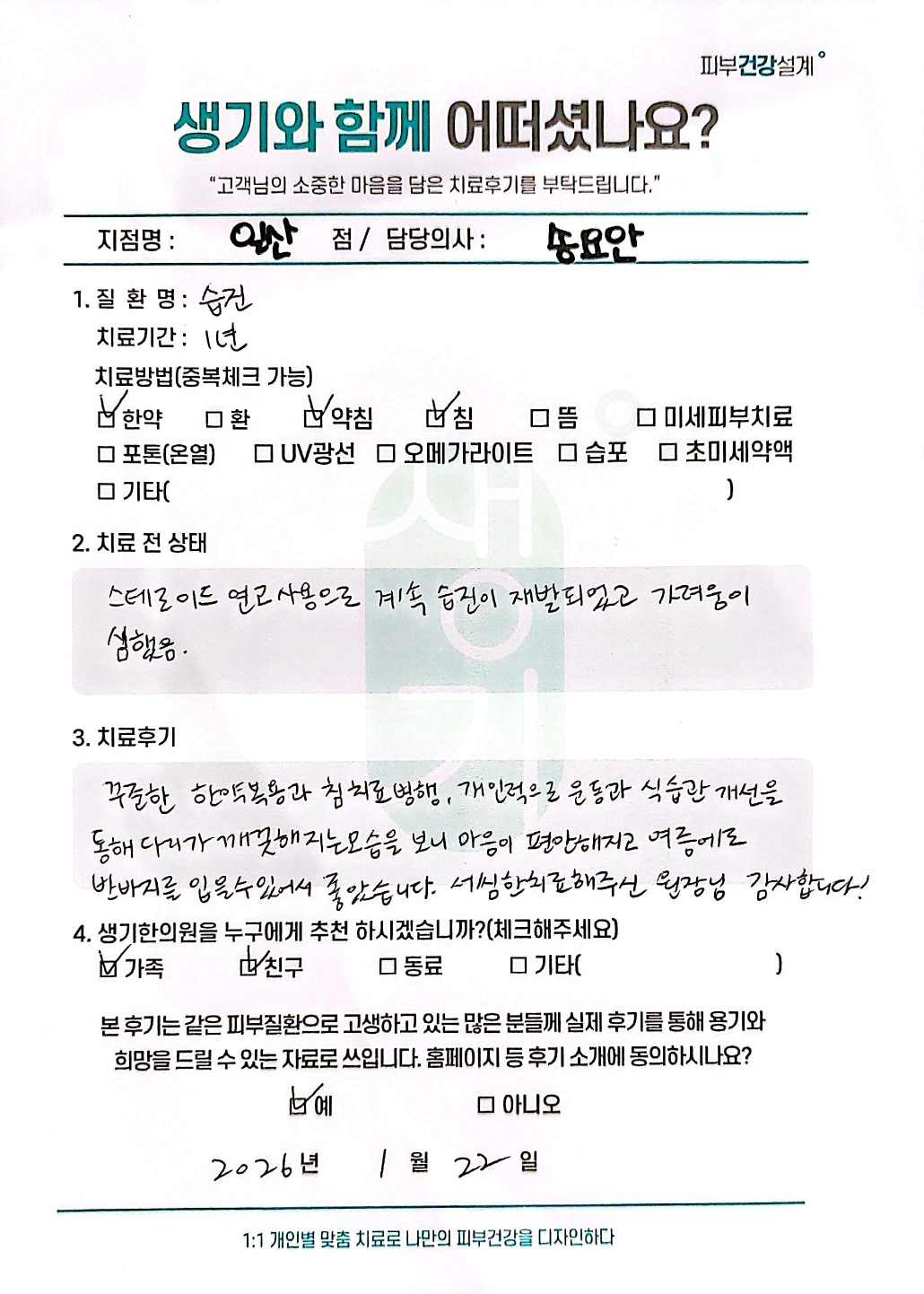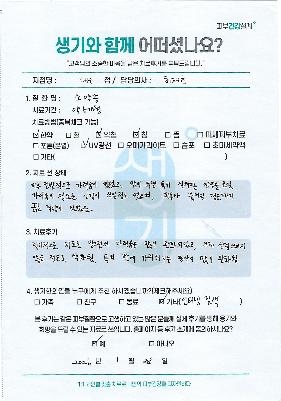 생기한의원과 함께하신 생생한 자필 및 영상 후기를 소개합니다.