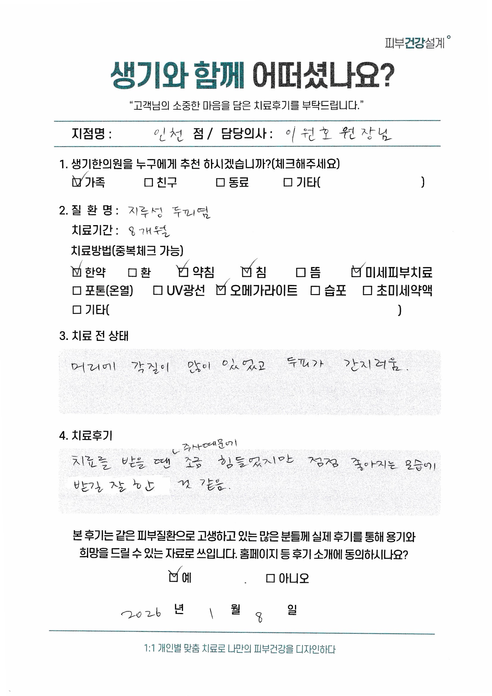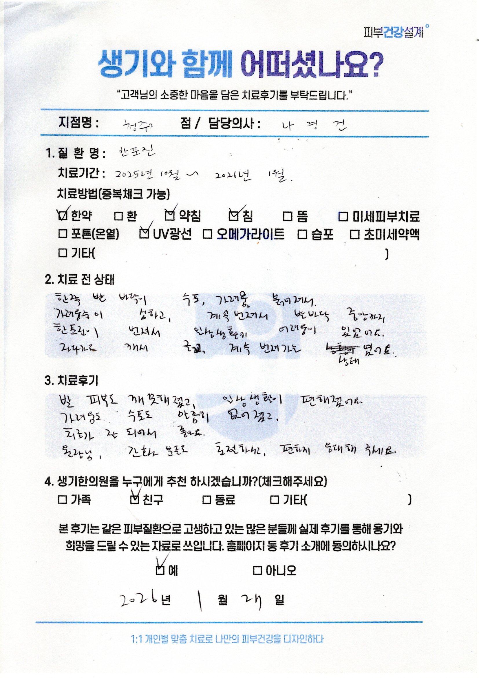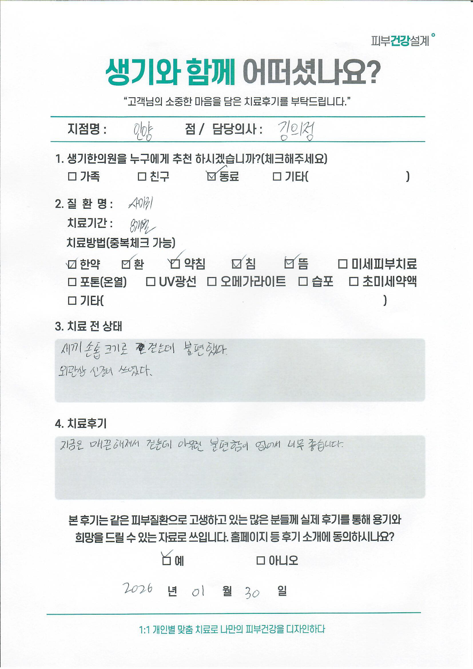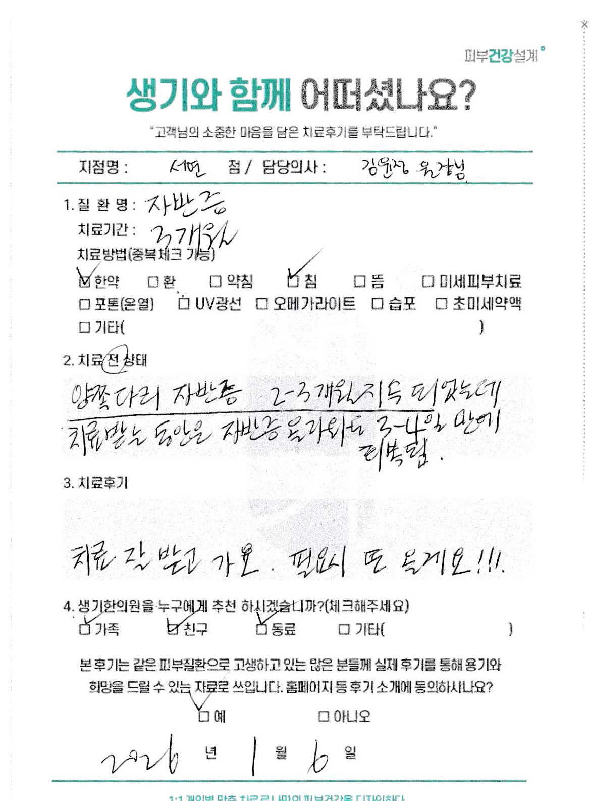 생기한의원과 함께하신 생생한 자필 및 영상 후기를 소개합니다.