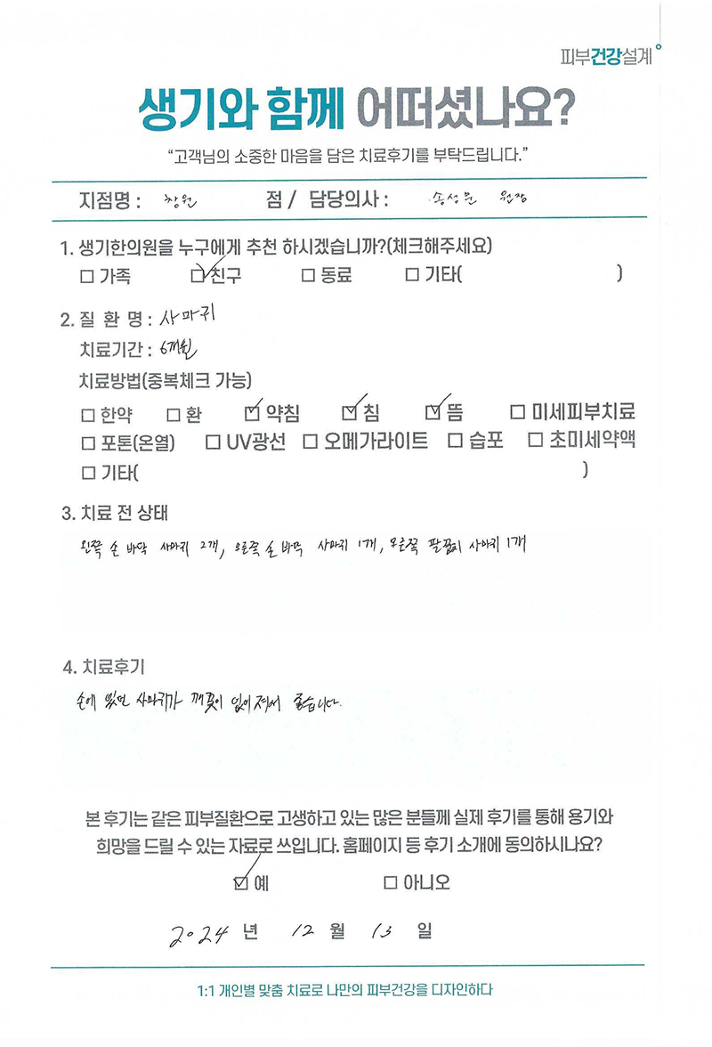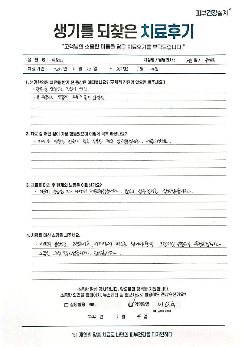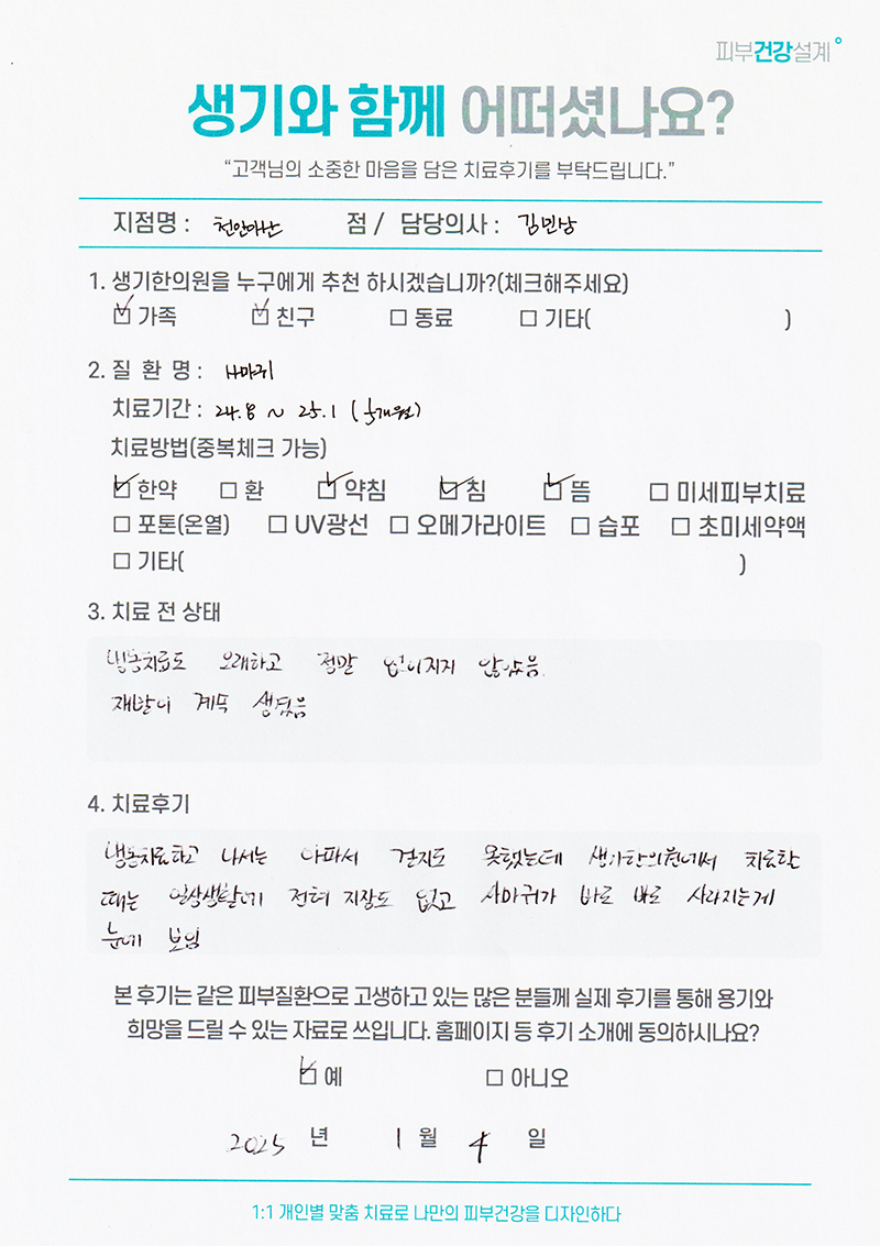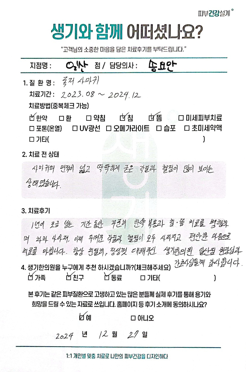 생기한의원과 함께하신 생생한 자필 및 영상 후기를 소개합니다.