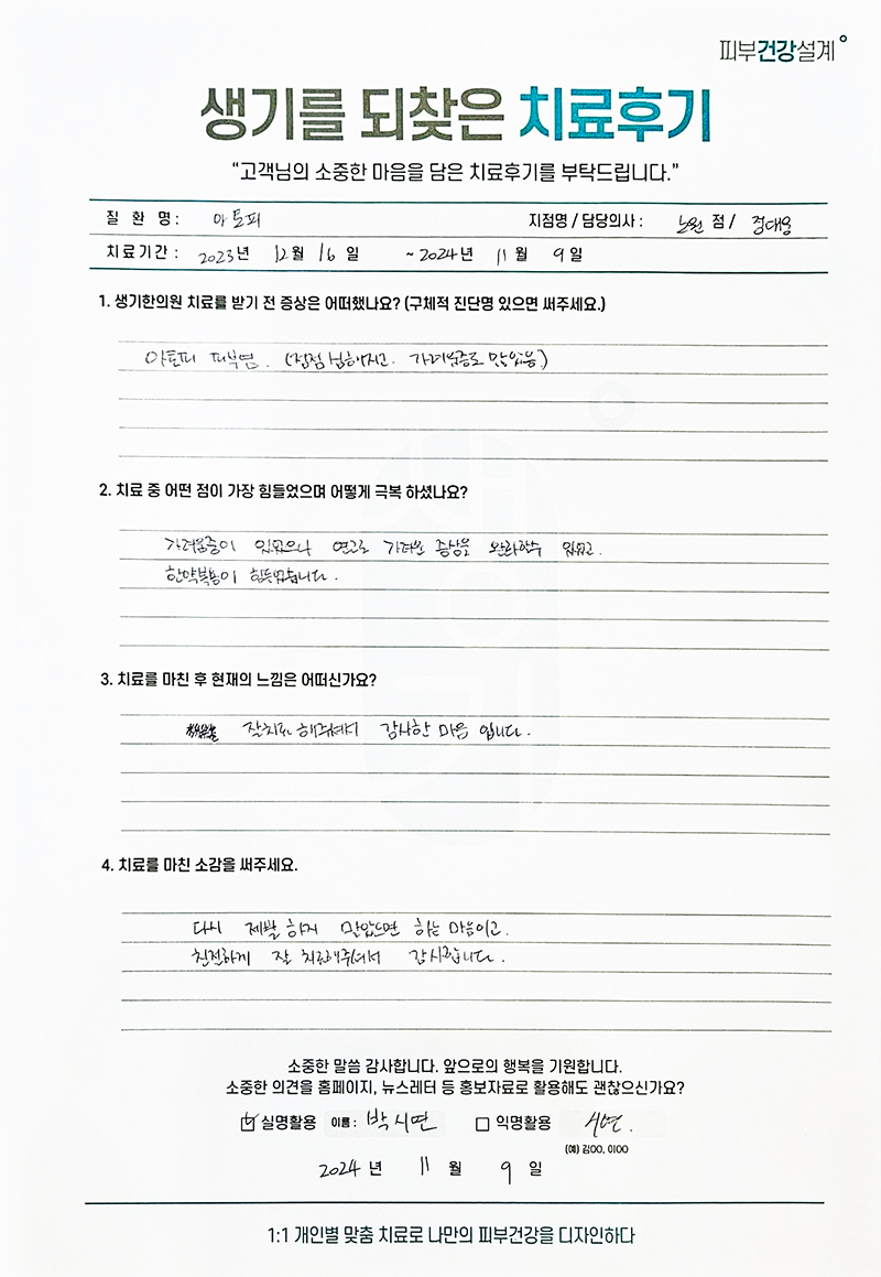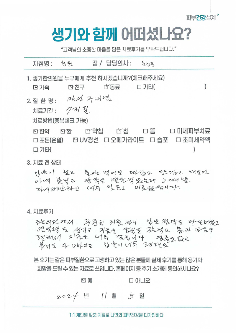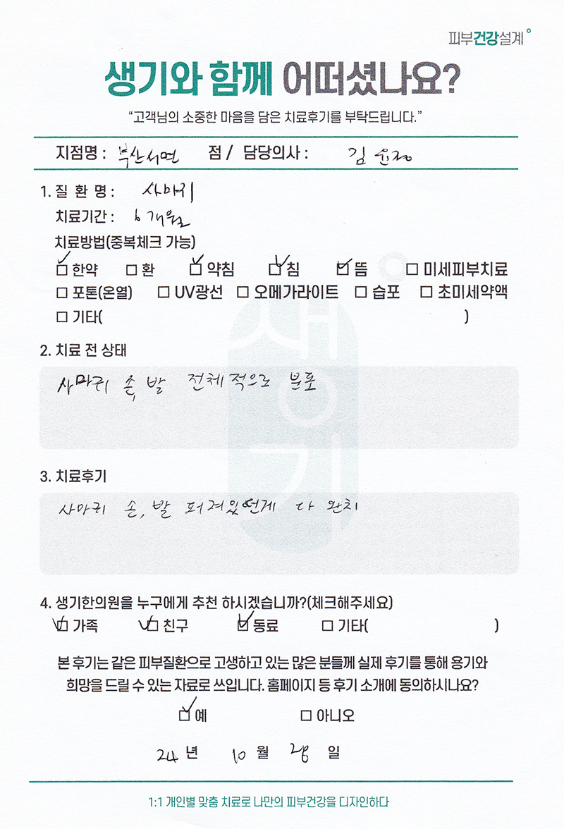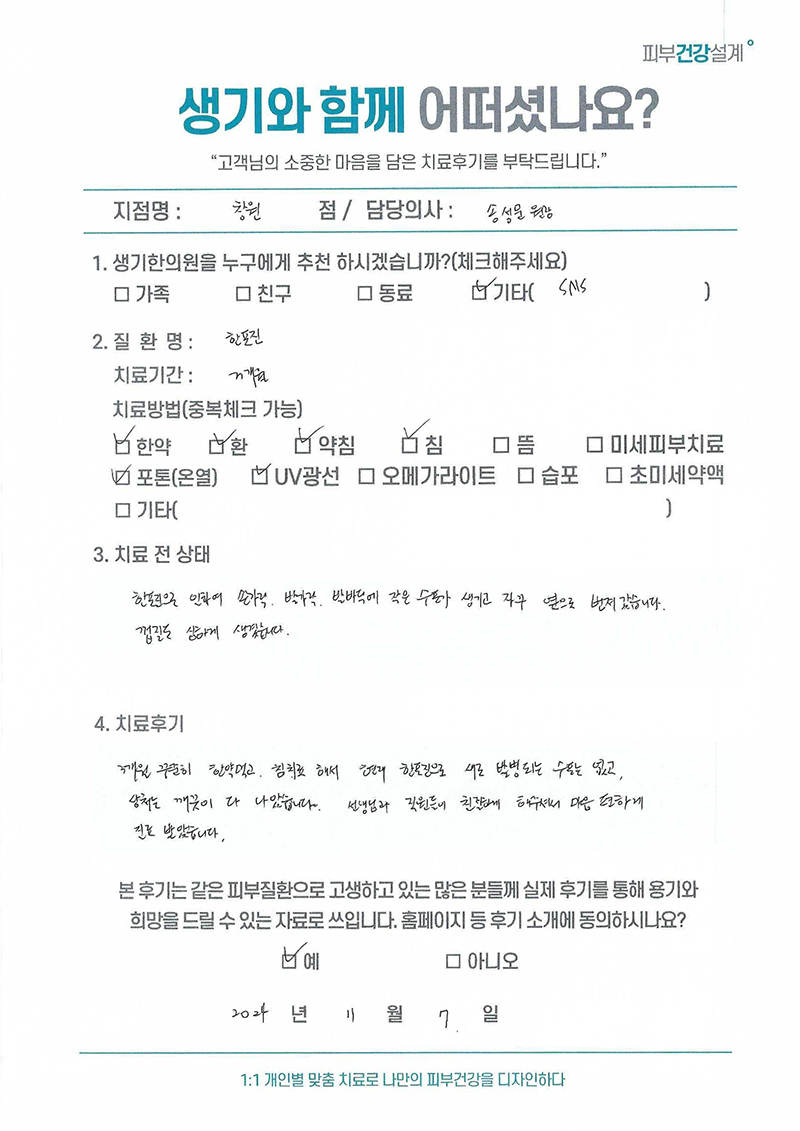 생기한의원과 함께하신 생생한 자필 및 영상 후기를 소개합니다.