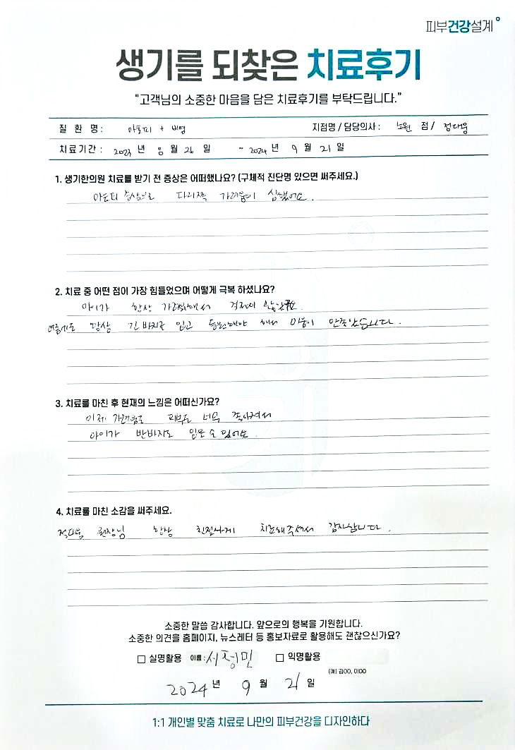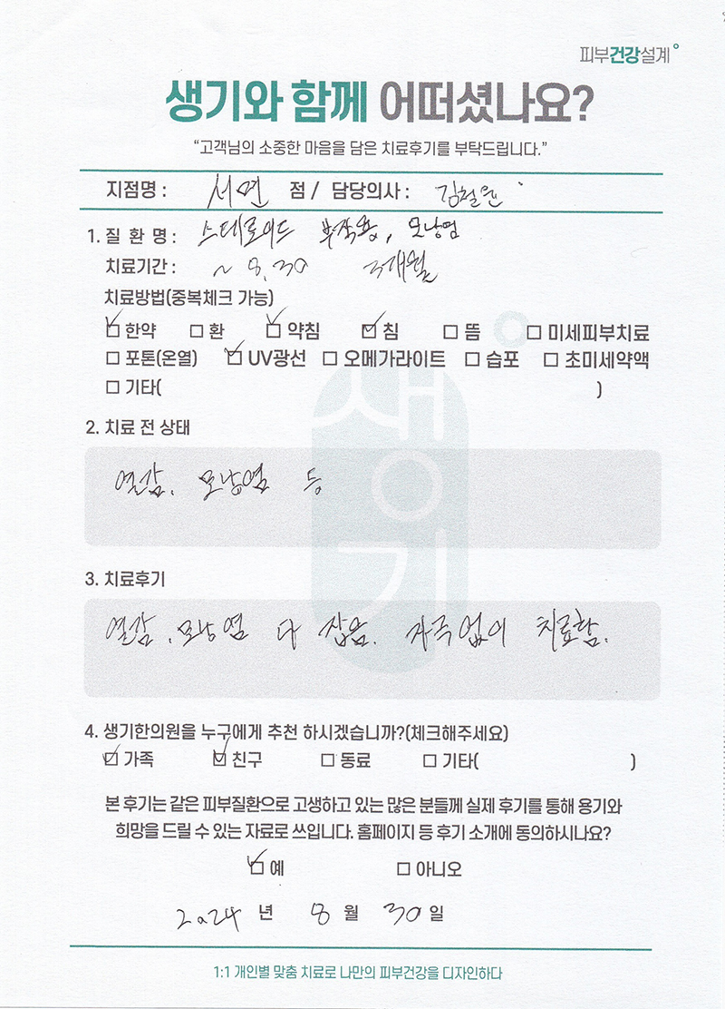 생기한의원과 함께하신 생생한 자필 및 영상 후기를 소개합니다.