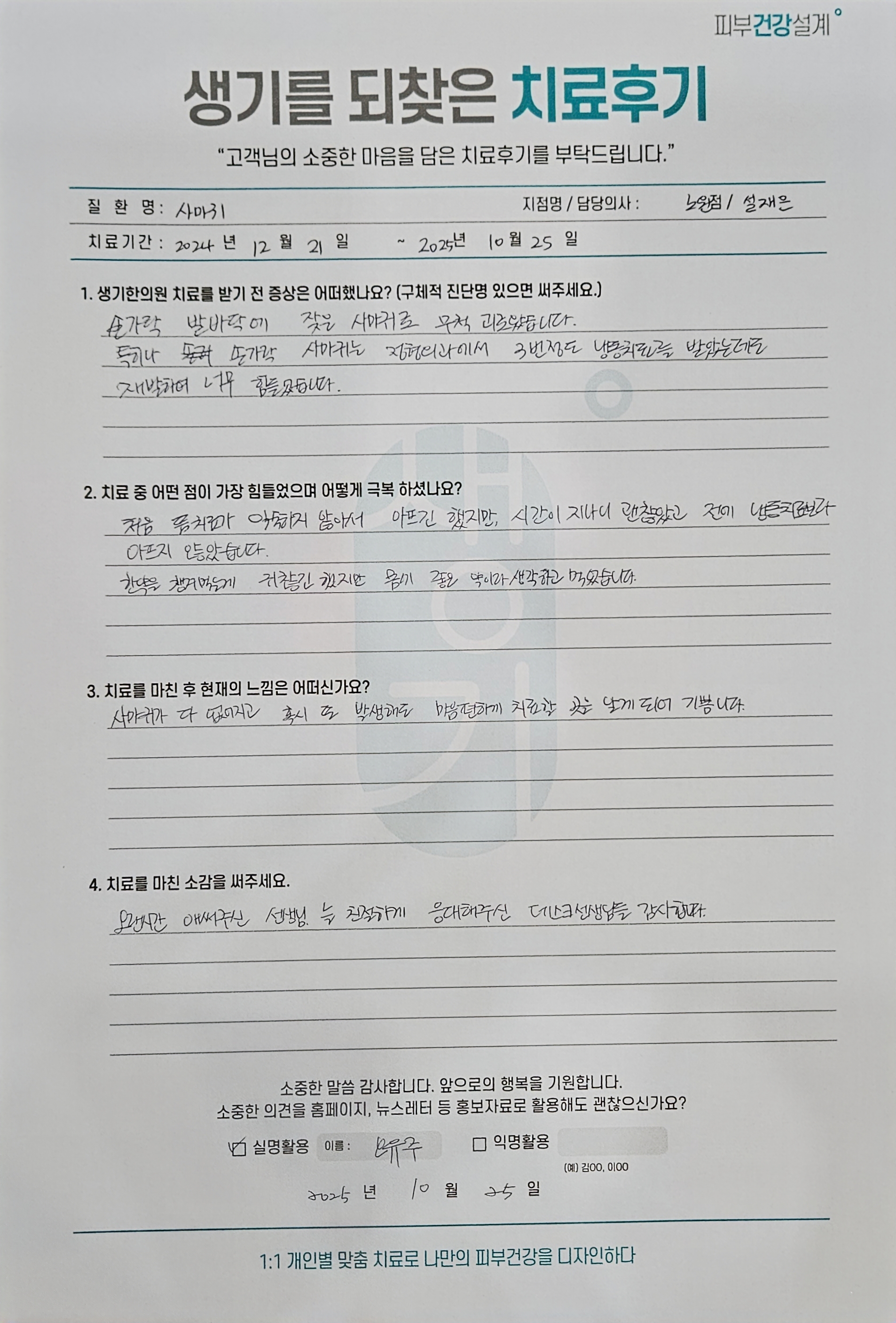 생기한의원과 함께하신 생생한 자필 및 영상 후기를 소개합니다.