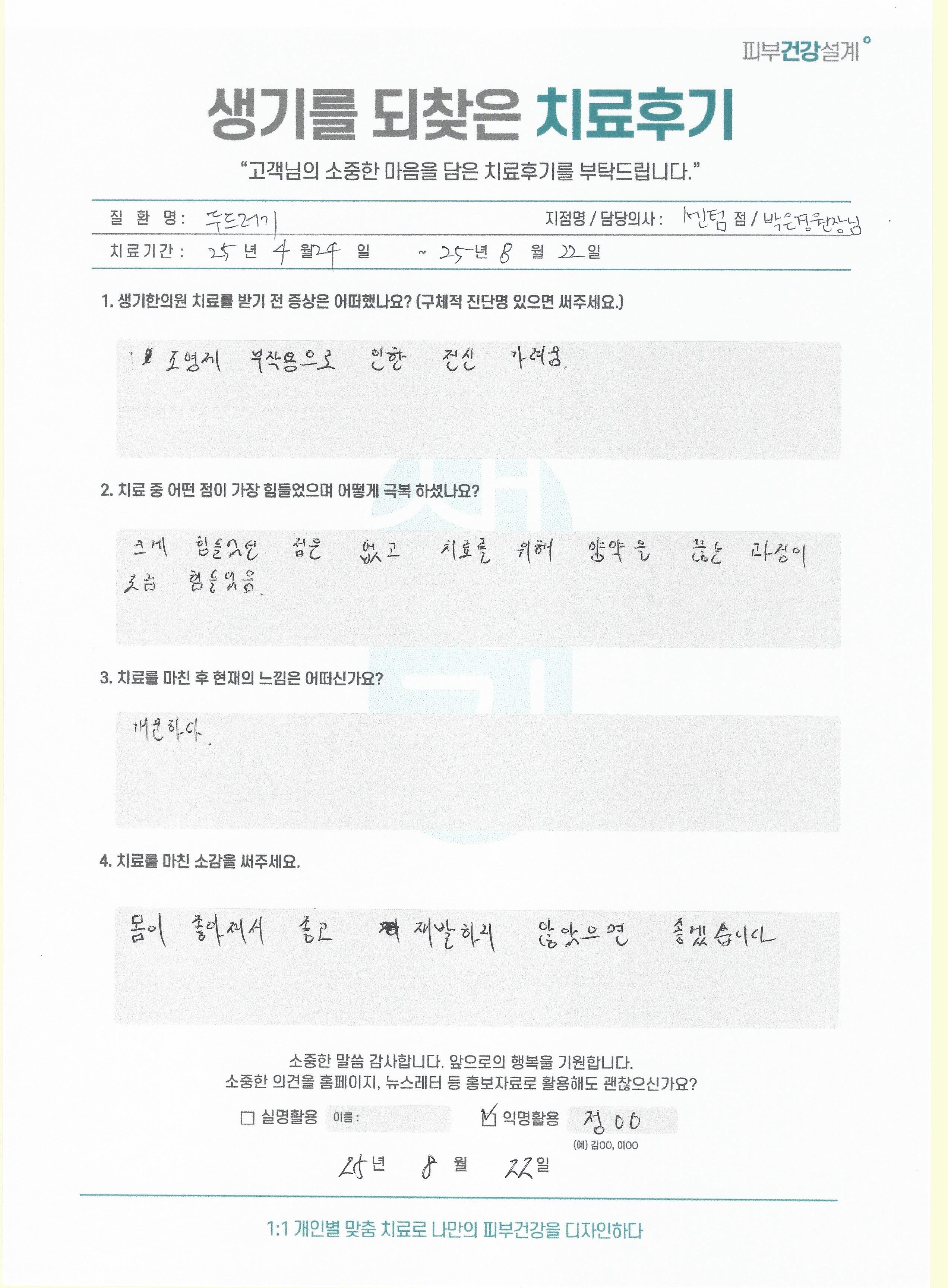 생기한의원과 함께하신 생생한 자필 및 영상 후기를 소개합니다.