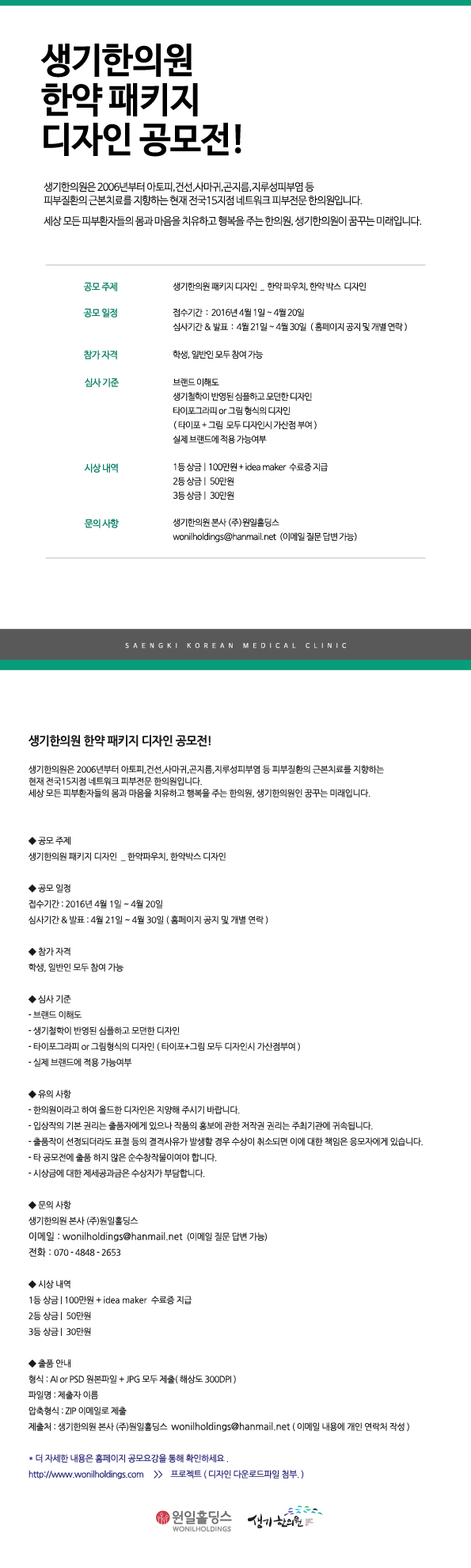 생기한의원 한약 패키지 디자인 공모전 안내..