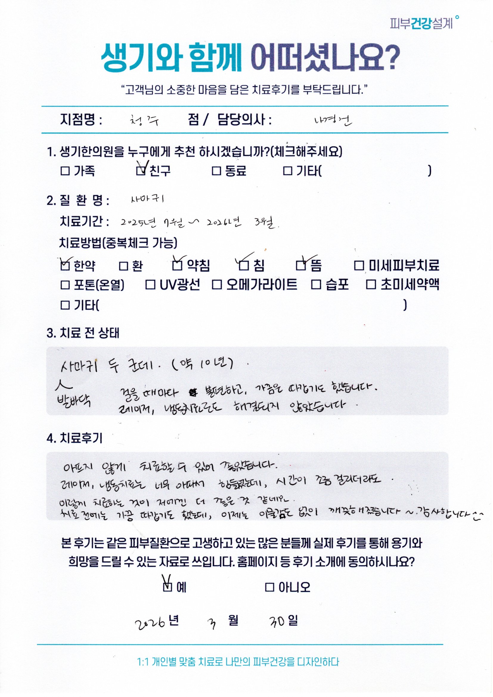 생기한의원과 함께하신 생생한 자필 및 영상 후기를 소개합니다.